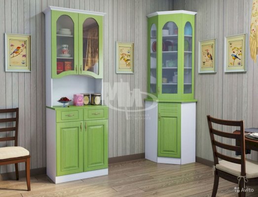 Цвет фасада: МДФ Белый матовый/Зеленый