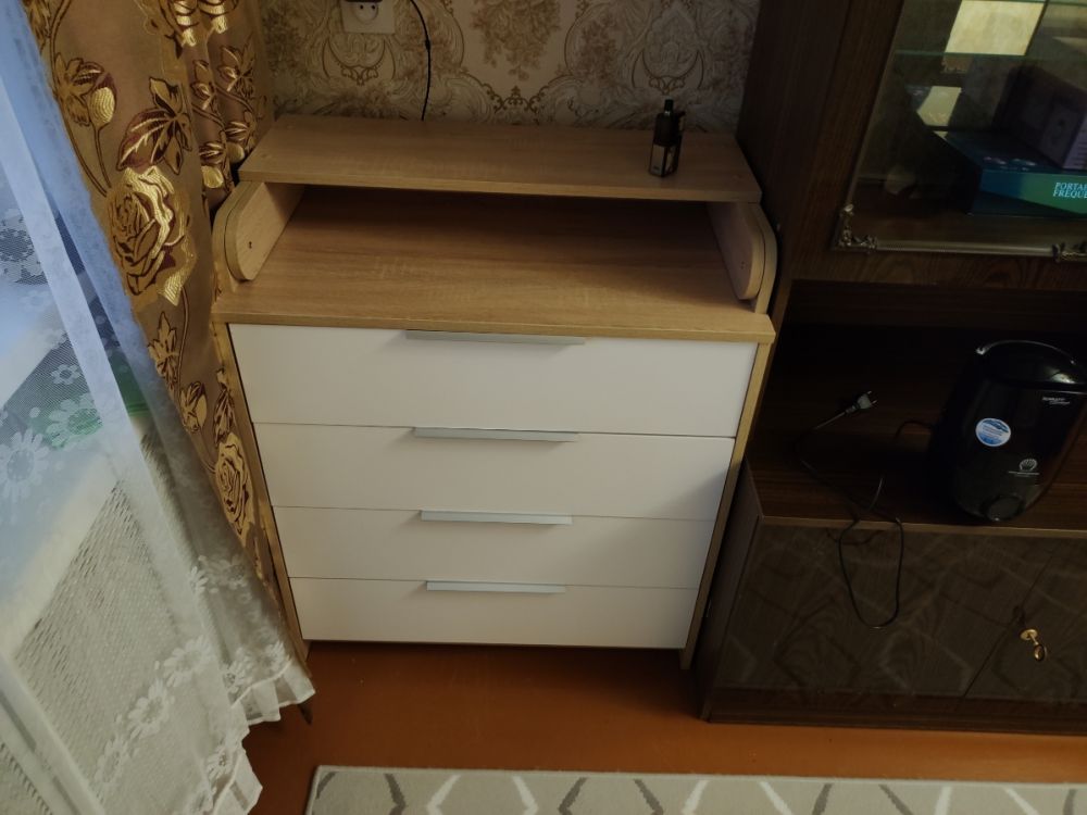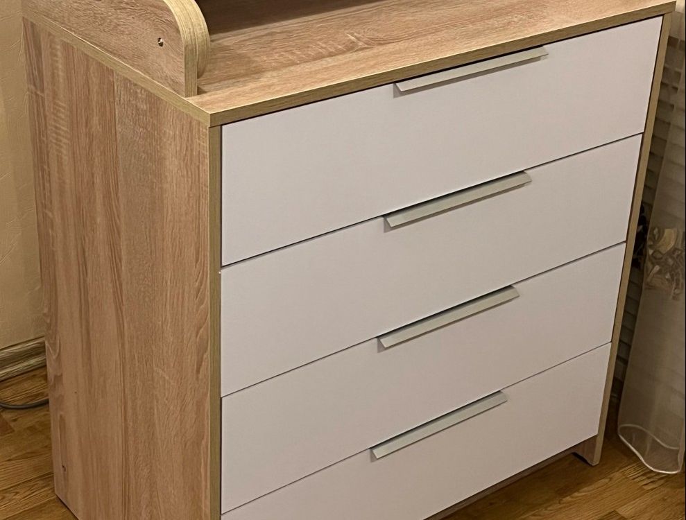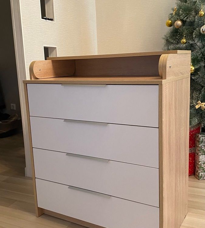 Хороший комод, заказали для малыша, но пока не установили пеленальную часть, в окружающую обстановку вписался отлично. В целом собирать было довольно непросто, потому что редко этим занимаемся. Но по инструкции все довольно понятно. На мой взгляд, маловато саморезов для фиксации ящиков и стенки комода, будем дополнительно докупать. Не могу сказать, что комод супер качественный и долговечный, но за свои деньги (<7000₽) это просто подарок. Рекомендую продавца и его товар.
