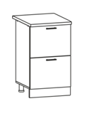 Глубина верхних шкафов указана без учета фасада, высота столов указана без учета столешницы