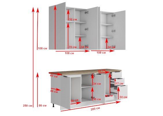 Высота верхних шкафов, мм 1080