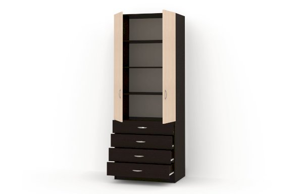 Данное изображение представлено в следующих цветах ЛДСП: корпус - Венге Цаво, фасады - Дуб молочный / Венге Цаво.