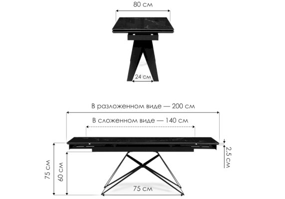 Длина разложенного столика, мм | 2000 |