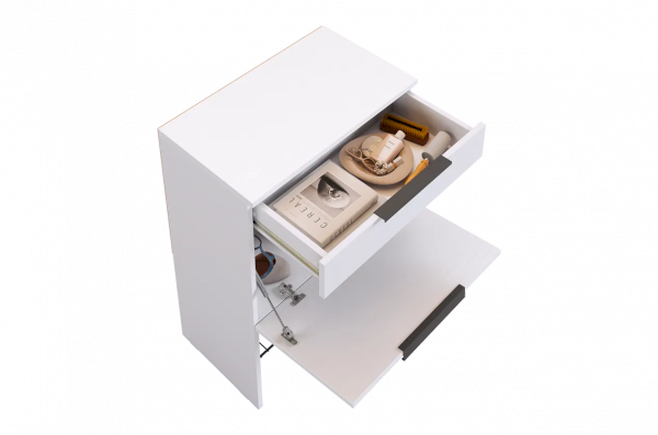 Изготовленная из прочного ЛДСП толщиной 16 мм, обувница обеспечивает надежность и долговечность. Выкатной ящик на шариковых направляющих позволяет легко и плавно открывать и закрывать его, предоставляя дополнительное место для хранения мелочей.