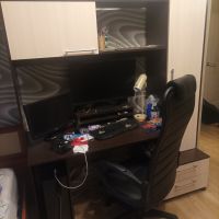 В общем покупкой доволен по сравнению со старым угловым столом более компактный, столешница прям целоее рабочее место можно использовать под верстачек или парту для школьника, пришлось засверлить отверстие под кабеля чтоб не пускать их за стеной, доработаю край столешницы слишком острый угол, по сборке где то часа 3 ушло но без метра никуда, в комплекте есть все и даже подробная инструеция со всеми размерами деталей, короче отличный стол - шкаф!!!! И еще остается место небольгое за нижней перегородкой испольщую чтобы спрятать стабилизатор от детей...